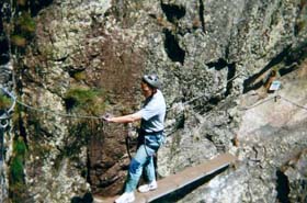 The platform at the start of the Adult's via ferrata is the easiest way to get on, but for those who are "in a rush" there is an intermediary access point.